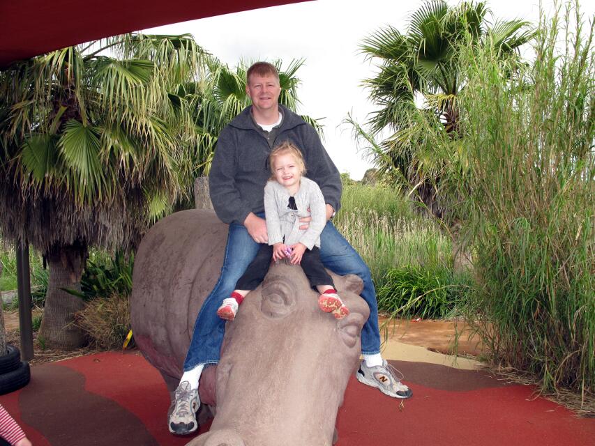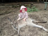 Still, we managed to visit the Weribee Zoo. There Christy and Sydney had a very close exposure to some Cheetahs. (Well, there was a glas pane between them, but it is hardly visible, is it?) Then, in the second part of the month, Thomas had to go to Brisbane for a client presentation. Christy and Sydney could come along and we made a long weekend. We stayed at the Whatley's where Sydney adores all family members.