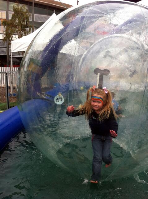 Speaking of playgrounds, every weekend Sydney asks us to go to the Carnival, a little entertainment park across from Costco. There she loves to go into the bubble and play around in the shallow pool.