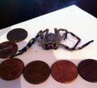 We finally got the huntsman spider that was hiding in Christy's car. The spider dropped onto the car one day and had been a constant companion since. Occasionally showing up to disappear again. One day was her last one. The spider is not small!