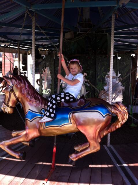 Speaking of playgrounds, every weekend Sydney asks us to go to the Carnival, a little entertainment park across from Costco. There she loves to go into the bubble and play around in the shallow pool.