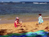The ten days we had went by like a whirlwind. David, Christy's dad come for a visit. We ate mostly at home, where we could use the char coal grill to create magic dinners. Throughout the day we also enjoyed icees (shaved ice) from Matsumoto, or Chocolate Haupia pie from Ted's Bakery. Needless to say we also had to visit the various beaches we used to go to in 2009.