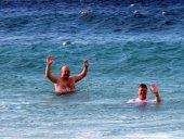 Together we spent some time to snorkel for the turtles in the water right in front of our place. In the evenings then, Sydney showed David where the turtles would come up to the beach to sleep through the night.