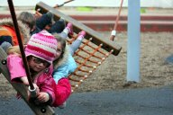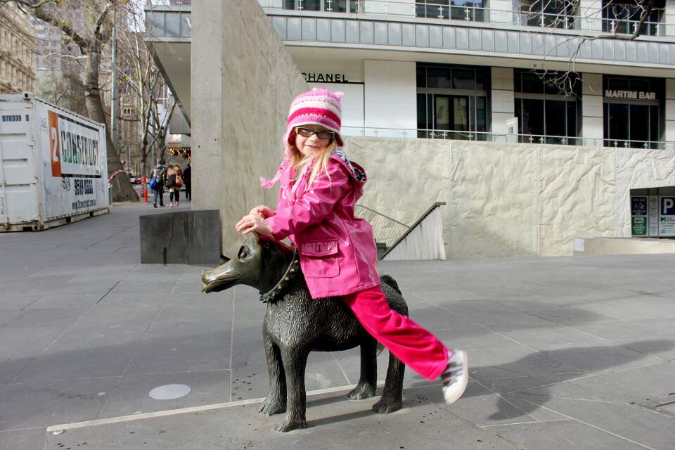 Sydney likes the train ride. After a stop at "our" Starbucks we head for Sydney's beloved park at the Yarra river. This is the first place she got to play after we arrived in Melbourne and she has continued to like this particular park.